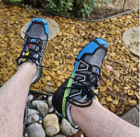 Jeg har testet disse skoene på gjørmete stier, sålen fester seg perfekt og jeg føler meg trygg. Veldig god støtte for foten.